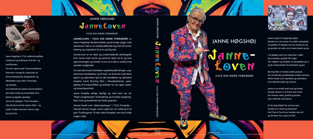 I starten af november udkom min bog: JanneLoven – Fuck din indre forræder. Den handler om min medvirken i Forræder – Ukendt Grund 2024 – sæson 1, hvor jeg nåede til finalen sammen med 2 dejlige drenge på 24 år. Du får også mine 8 leveregler og livshistorie om mit kreative, nysgerrige og modige liv, fra jeg ryster skallerne af røven og til planen for mit afskedsparty, når jeg har stillet cowboystøvlerne. Du kan fra 8. november købe den i boghandlen eller hos forlaget HER og booke mig til foredrag om min medvirken i Forræder og om JanneLoven HER